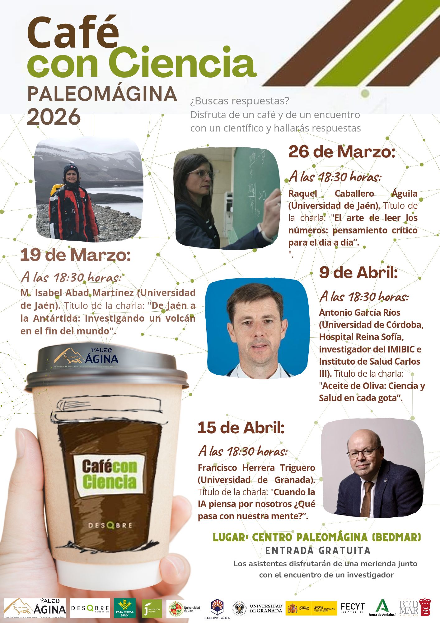 El sexto ciclo de Café con Ciencia Paleomágina 2026 engloba en esta nueva edición con cuatro mesas de investigadores de temas de actualidad, que compartirán su experiencia científica y disfrutarán de un café y unas pastas.
