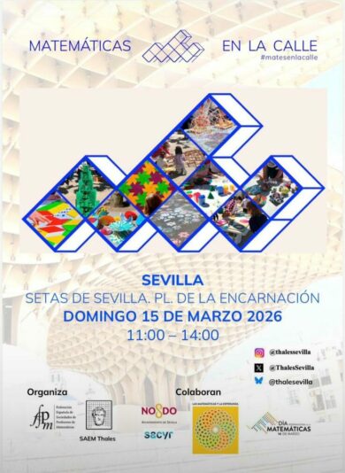 La Sociedad Andaluza de Educación Matemática Thales – Sevilla ha organizado en las Setas de Sevilla, en la Plaza de la Encarnación de la capital, una nueva jornada de ‘Matemáticas en la calle‘ con motivo del Día Internacional de las Matemáticas. Será el domingo 15 de marzo en horario de 11 a 14 horas.