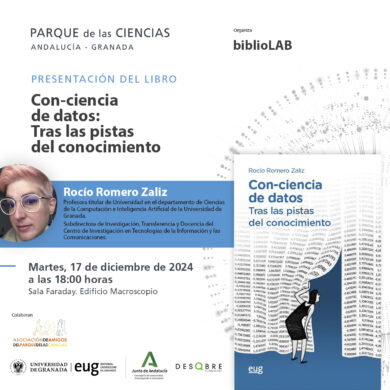 Rocío Celeste Romero Záliz subdirectora ´de Investigación, Transferencia y Docencia del Centro del Centro de Investigación Tecnologías de Información y Comunicaciones presentará su libro Con-ciencia de datos. Tras las pistas del conocimiento, el próximo martes 17 de diciembre de 2024 a las 18:00 horas en el Parque de las Ciencias.