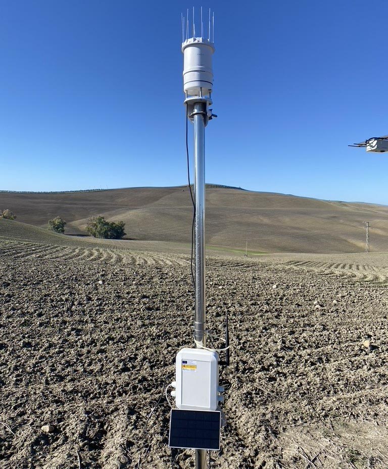 - Una estación meteorológica equipada con doce sensores registra variables del clima como temperatura, radiación, humedad, viento o precipitación.